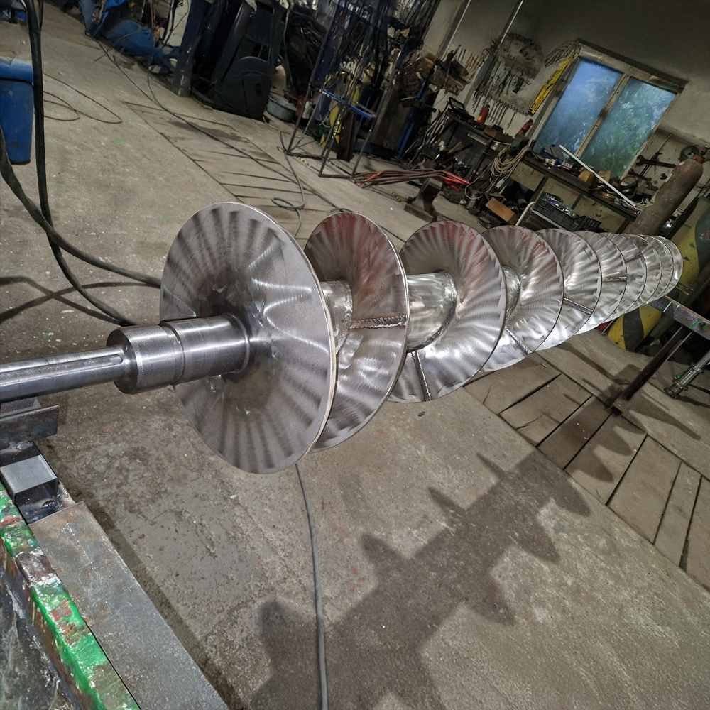 Robustný šnekový dopravník pre silné zaťaženie s vysokou odolnosťou vďaka hrúbkam materiálov. Plus na posledných 3 otáčkach je zosilnenie proti draniu závitu nerezovou ohýbanou guľatinou priemer 16mm.