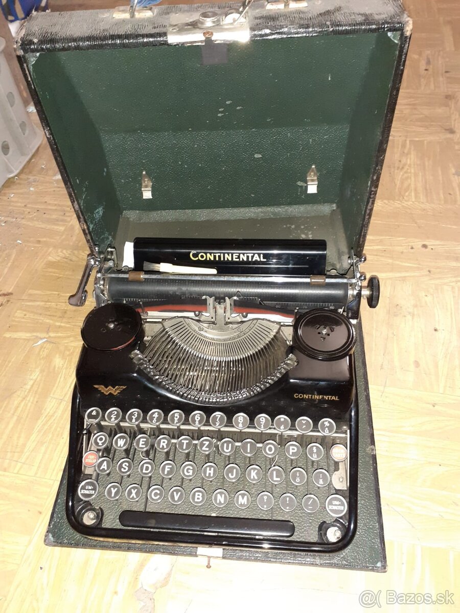 Predám originálny starožitný funkcny kufríkový písací stroj značky Continental. Ide o kvalitný mechanický písací stroj s kovovou konštrukciou, uložený v pôvodnom kufríku. Vhodný pre zberateľov, milovníkov retro techniky alebo ako štýlový doplnok do interiéru.
