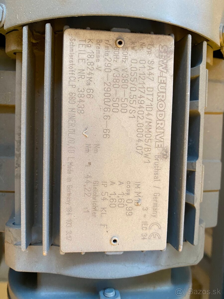 Elektromotor s prevodovkou z dopravníka