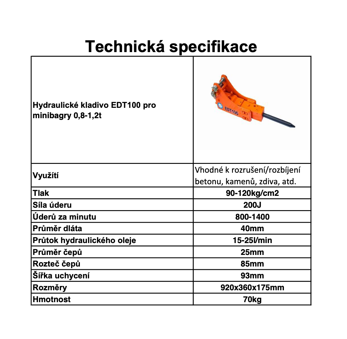 Hydraulické kladivo EDT 100