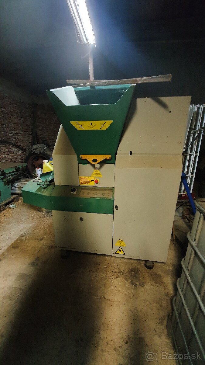 Briketovací lis so zabudovaním drvičom, dvojmotorový pohon, prívod vody, automatický spätný chod riadenia. Nastaviteľný tlak kompresie zhutňovania.