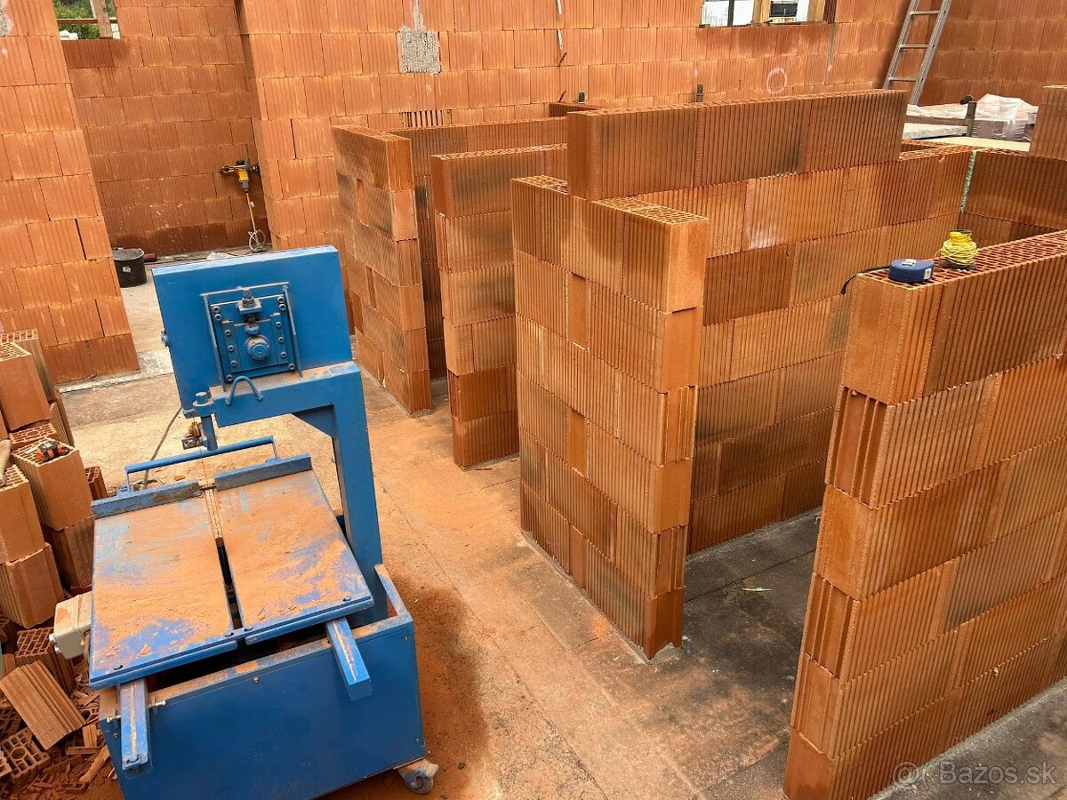 Predám pásovú pílu na tvárnice, ako Porfix, Pálená tehla - Potorotherm, Britterm a pod. aj na DT a pod. Max výška rezu je 420 mm. Píla sa používa na sucho a je chladená vzduchom-ventilátorom. Výkon motora je 3000 W, napájanie na "380"V 5-kolík 16A