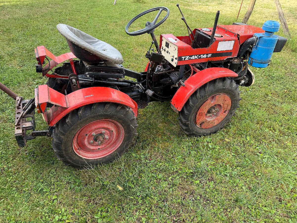 Predám malotraktor TZ4K14F podľa obrázku, plne funkčný, všetko originál od výroby, vymenený olej, filtre, nový akumulátor, veľmi málo používaný vrátane závaží na predných kolesách, ľahké brány so závesom.