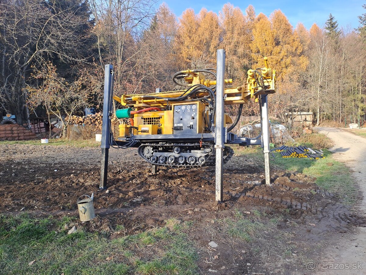 Predám čínsku vrtnu súpravu na vrtanie studni ktorá je na pasovom podvozku.vaha 5,5ton. Používaná jednu sezónu plne funkčná.K vrtnej súprave komplet Vybavenie,vrtne tyče priemer 89mm 1,5m,pažnice priemer 220mm 1,5m na 25m,vzduchové hadice 2ks 25m na 30bar.napojenie rychlospojky viac info 0907 615 116