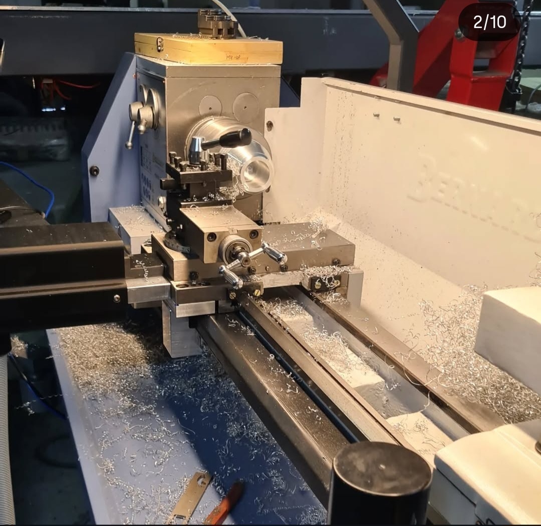 Je to konvertovany manualny sustruh na cnc. V kazdej ose gulickove skrutky a silne 12 a 5,6 NM krokove motory.