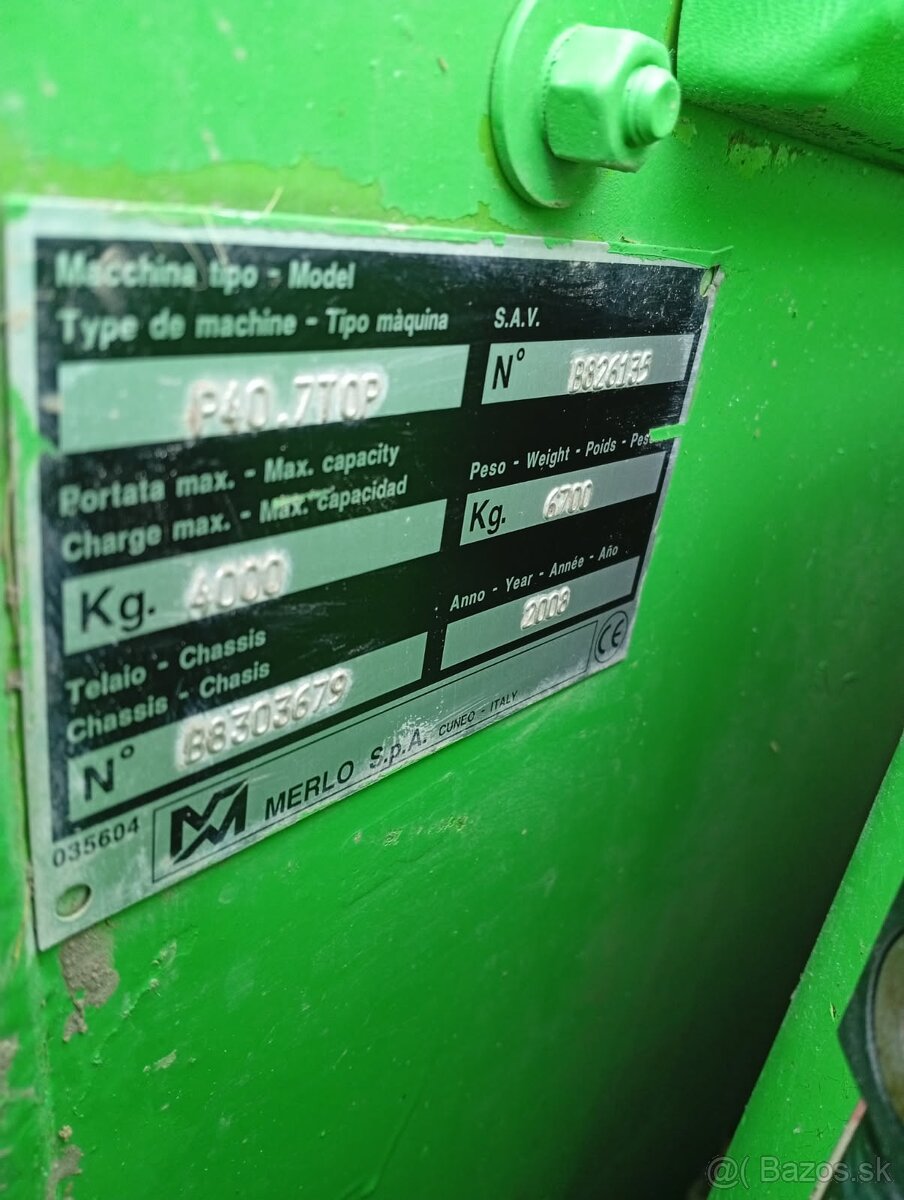 Predám teleskopický manipulátor MERLO TURBOFARMER P 40.7 TOP rok výroby 2008. Predaj kvôli kúpe nového stroja. Cena 18 000,- Eur.