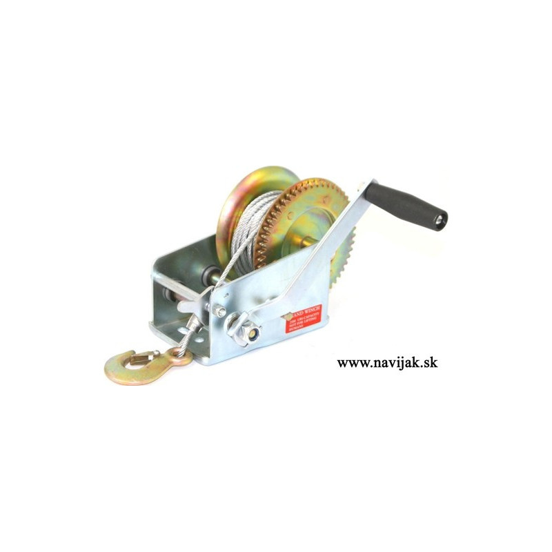 Ručný navijak s oceľovým lanom, dvomi rýchlosťami navíjania a bezpečnostnou poistkou.