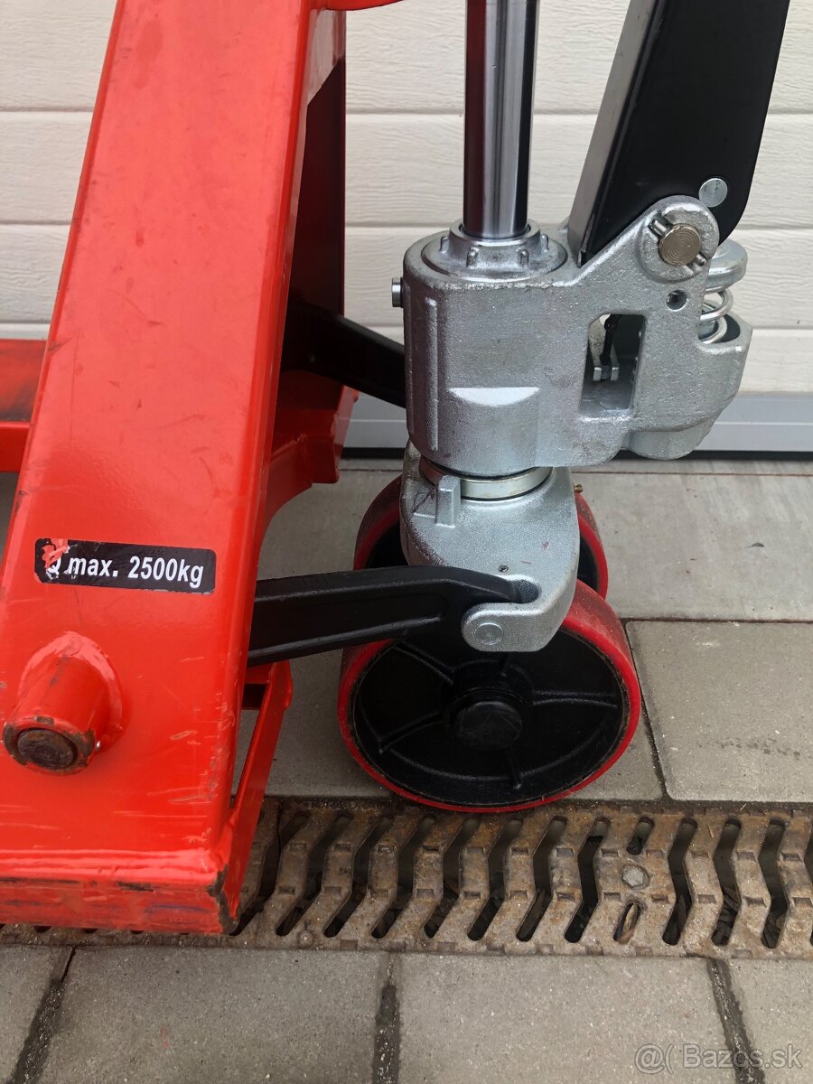Predám funkčný,zachovalý,používaný paletovy vozik.Paletak je pretesneny nové manžety aj olej,dĺžka lyzin 115cm,zdvih 2500kg,kolieska v dobrom stave,možnosť odskúšať ,cena 190€.
