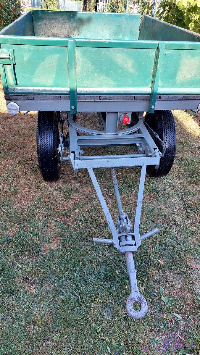 Predám brzdeny vlek za malotraktor ,je to Original za Multicar M22.Drevená podlaha,nie je tam plech,nosniky je kov.Nosnost 2000kg, ložná plocha cca 130x200, výška podlahy od zeme je 80 cm a celková výška s bočnicami je 110 cm ,zachovale nove pneu,dobrý stav. Nie je to vyklápačka a vlečka je bez dokladov.