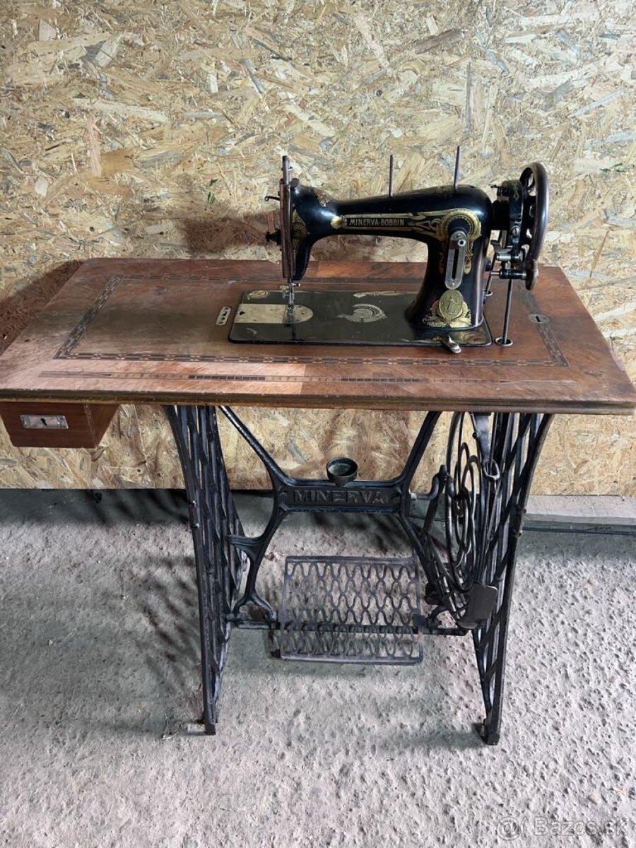 Predám šijací stroj. - [1.3. 2026]Lacno predám tento plne funkčný šliapací šijací stroj značky MINERVA.Da sa na ňom šiť, popr.može poslúžiť ako retro doplnok, rekvizita.Cena je iba 70€.Pozri aj moje ďalšie inzeráty, klikni na,,Minerva,,