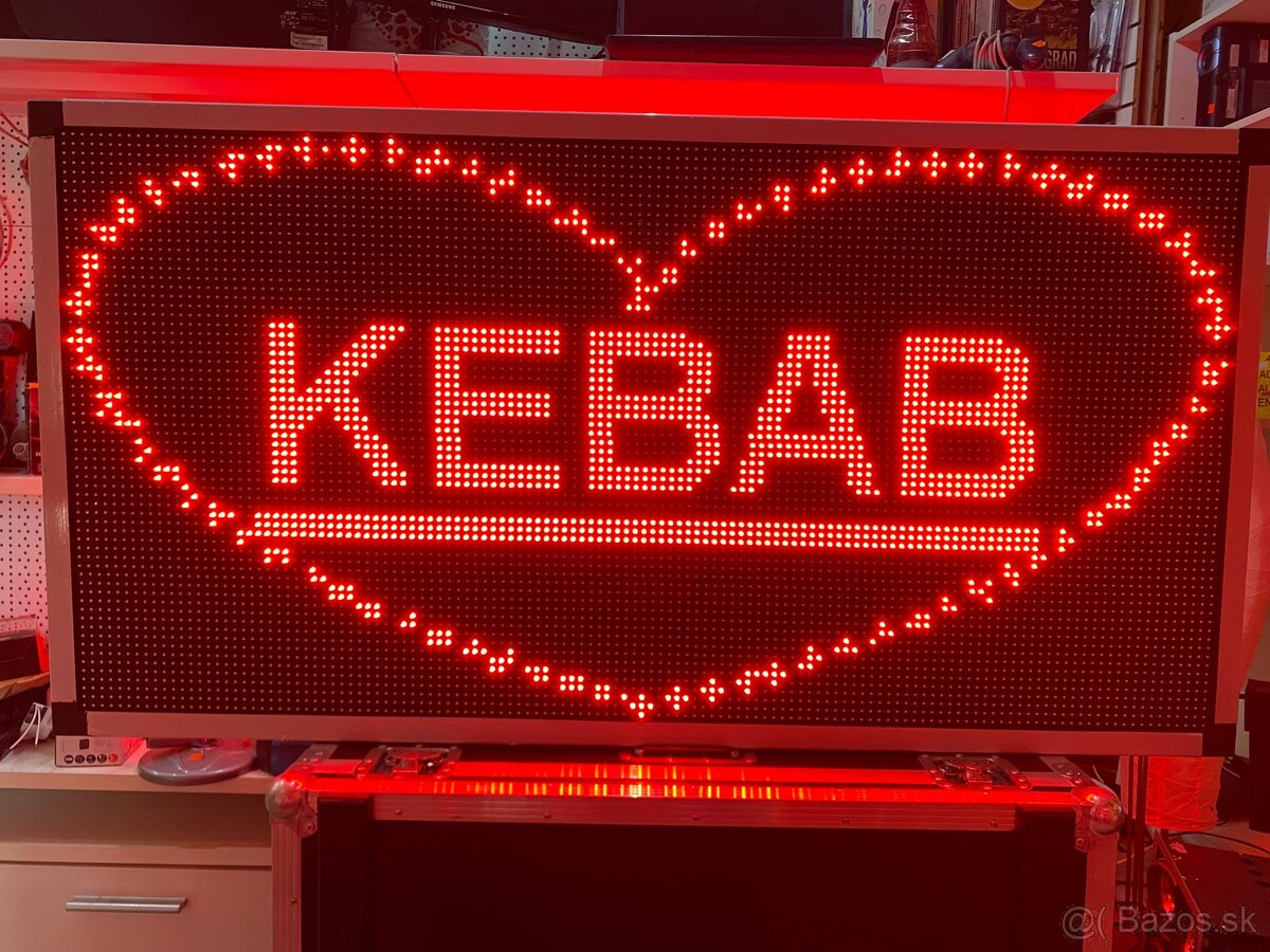 Led reklama farebna 101x53cm. 490€ - [8.2. 2026]Predam led Programovateľnu farebnú reklamu rýchle zadávanie textu cez telefón alebo počítač reklama je vhodná na vonkajšie použitie možnosť meniť farby textu efektov obrázkov automaticke zapnutie vypnutie hodiny dTum a vela roznych efektov
