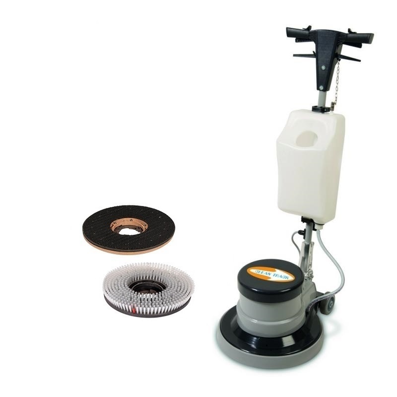 Cena zahŕňa stroj vrátane príslušenstva: stroj, nylonová kefa na tvrdé povrchy, unášač padov, nádoba na roztok. Na dokúpenie vo voliteľnom príslušenstve kefa na čistenie kobercov, čiastiace pady a pod..