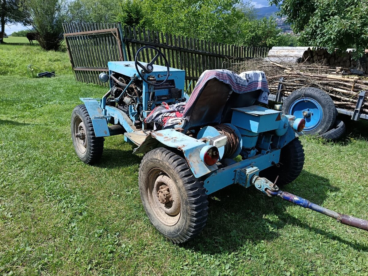Malotraktor je domacej vyroby 4x4, motor trabant, prevodovka trabant ale prerobena do sily(max rychlost 20-30kmh)