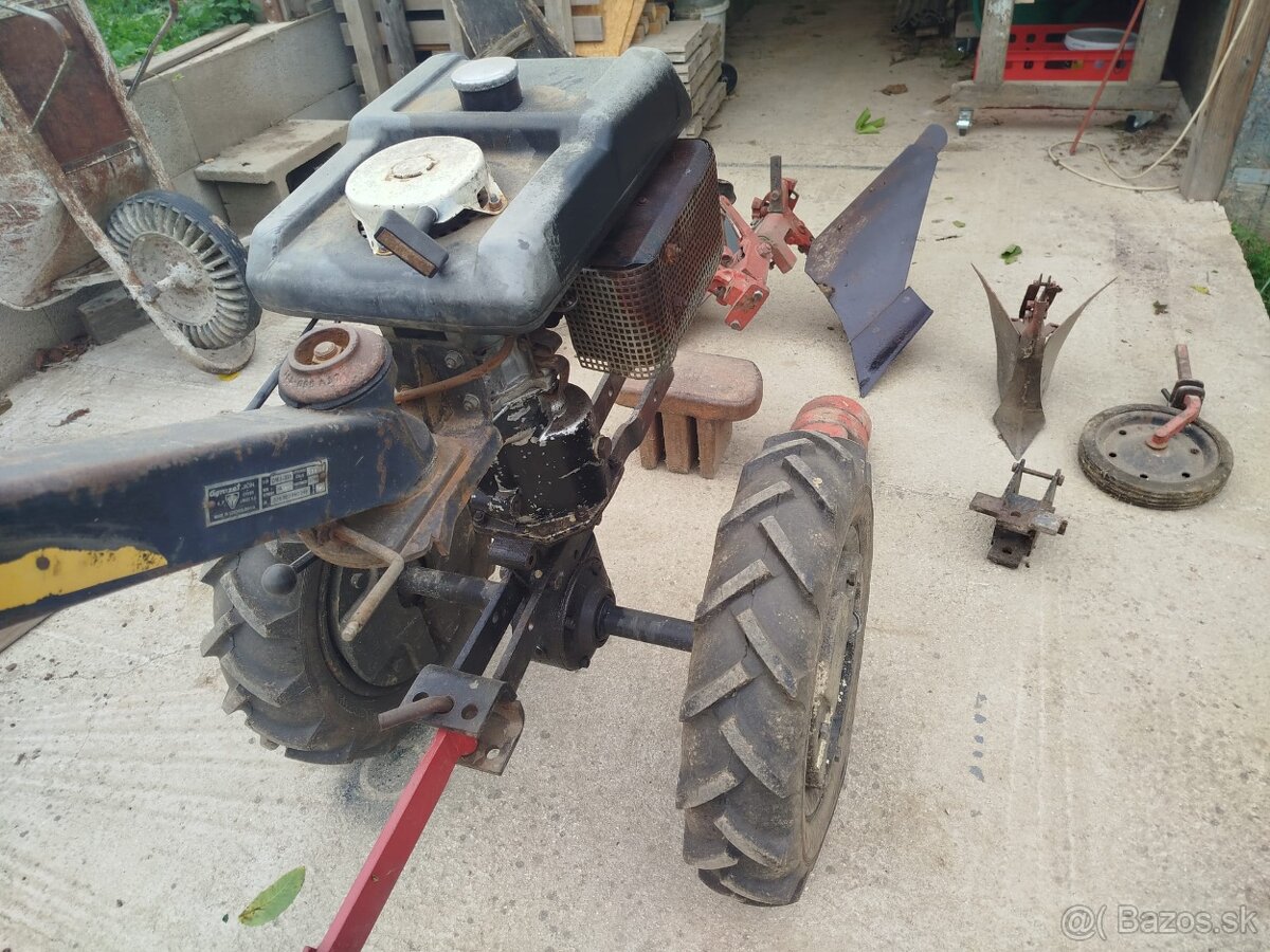 Vari system - [21.1. 2026]Predám Vari system s prevodovkou DSK 317,tri rýchlosti vpred+ spiatočka,spojka 80mm,motor Jíkov CZ, 133cm3 s výkonom5,5 koní plne funkčný,v cene traktora je pluh obracak, rotávator a radlica na sneh.Cena všetko spolu 1000€