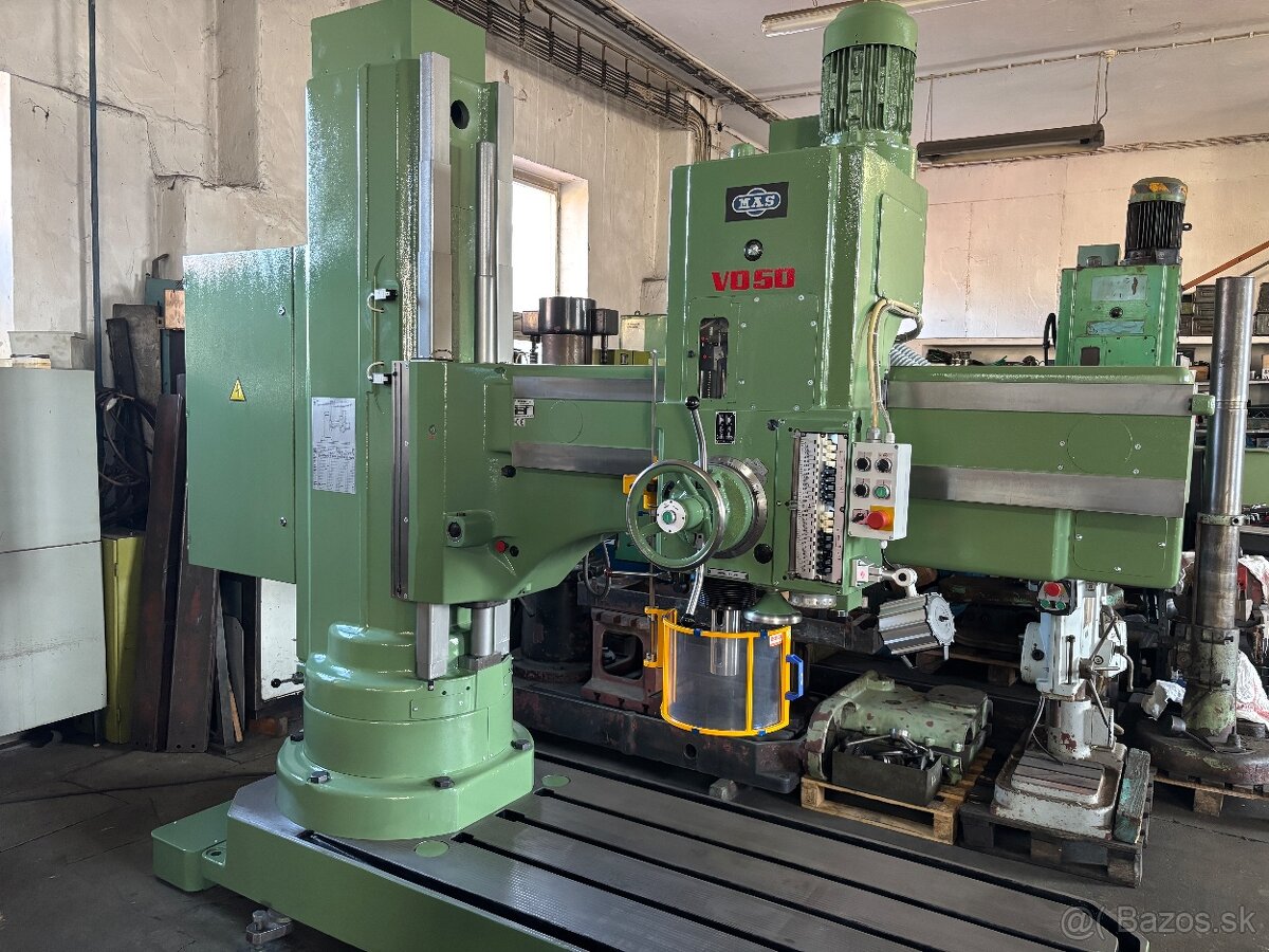 Prodáme vrtačku otočnou po opravě, typ VO 50/1600, r.v. 1999, provedení "CE", včetně nového laku, chlazení, protokolu přesnosti, dokumentace a garance. Technická data viz foto. Možnost dodání vrtacího stolu.