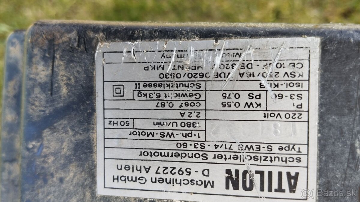 Elektromotor Kochs Adler 550 W – TOP STAV - [12.3. 2026]Predám kvalitný nemecký trojfázový elektromotor Kochs Adler, typ F 751. Motor je plne funkčný, málo používaný, s kompletným zapojením – stačí zapojiť a používať. Ideálny na pohon strojov, brúsok, ventilátorov, čerpadiel a pod. Veľmi zachovalý stav, bez porúch. Kvalitný motor, nie ako dnešné lacné ná ...