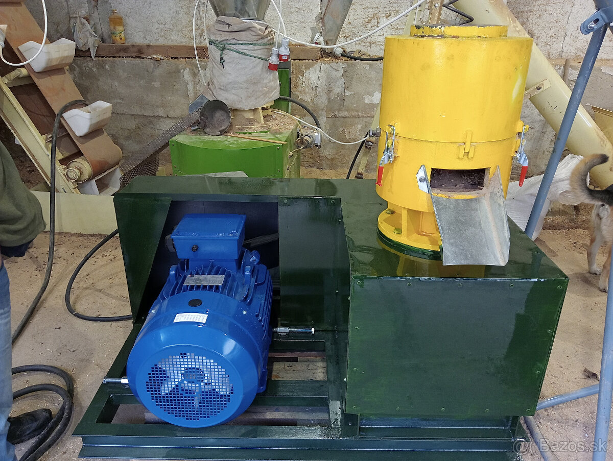 Výkon motora 30 kW, priemer matrice 35 cm. Hodinový výkon produkcie peliet 300-500 kg/hod.