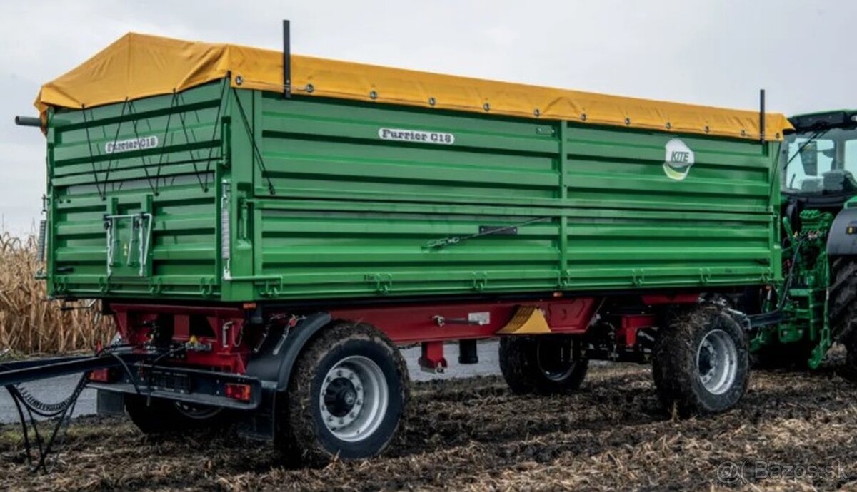 Poľnohospodársky príves FURRIER C18 je užitočný pomocník pri preprave úrody a iných poľnohospodárskych materiálov v rámci podnikov a mimo nich. Ponúka pôsobivú kapacitu a všestrannosť vyklápania a sklápania v troch smeroch. Má zosilnenú plošinu a bočnice, ktoré zaisťujú spoľahlivosť pri veľkom zaťažení.