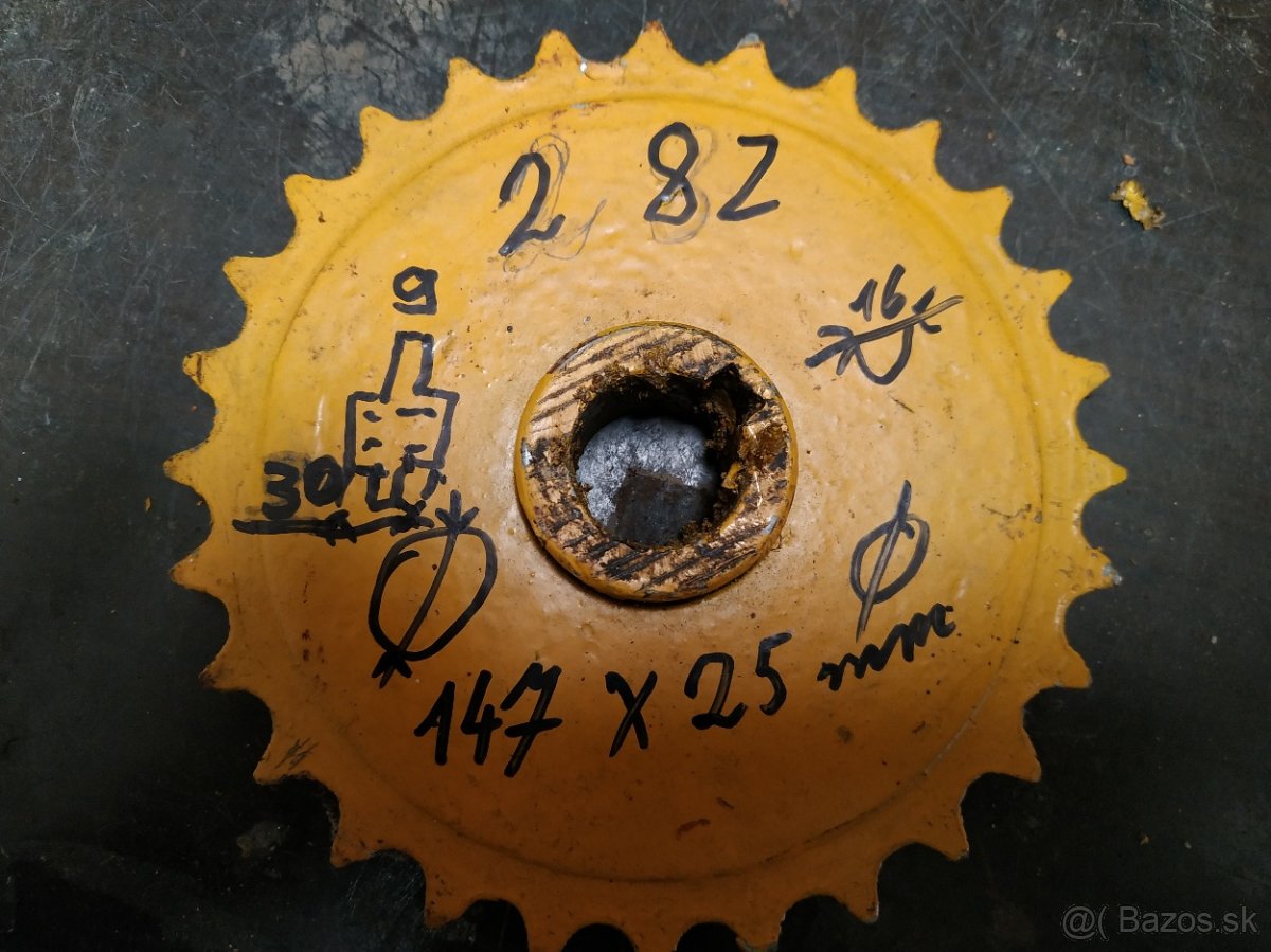 Predám remenice na 1x10mm remeň, priemer remenice je 140mm a diera má 30mm, 1x17mm remeň priemer 147mm diera 28mm, 1x12mm priemer 69mm diera 12mm a ozubenú kolo 28 zubové rozteč zubov 16mm- priemer 147mm diera 25mm, po 15 € kus..na SMS neodpovedám..