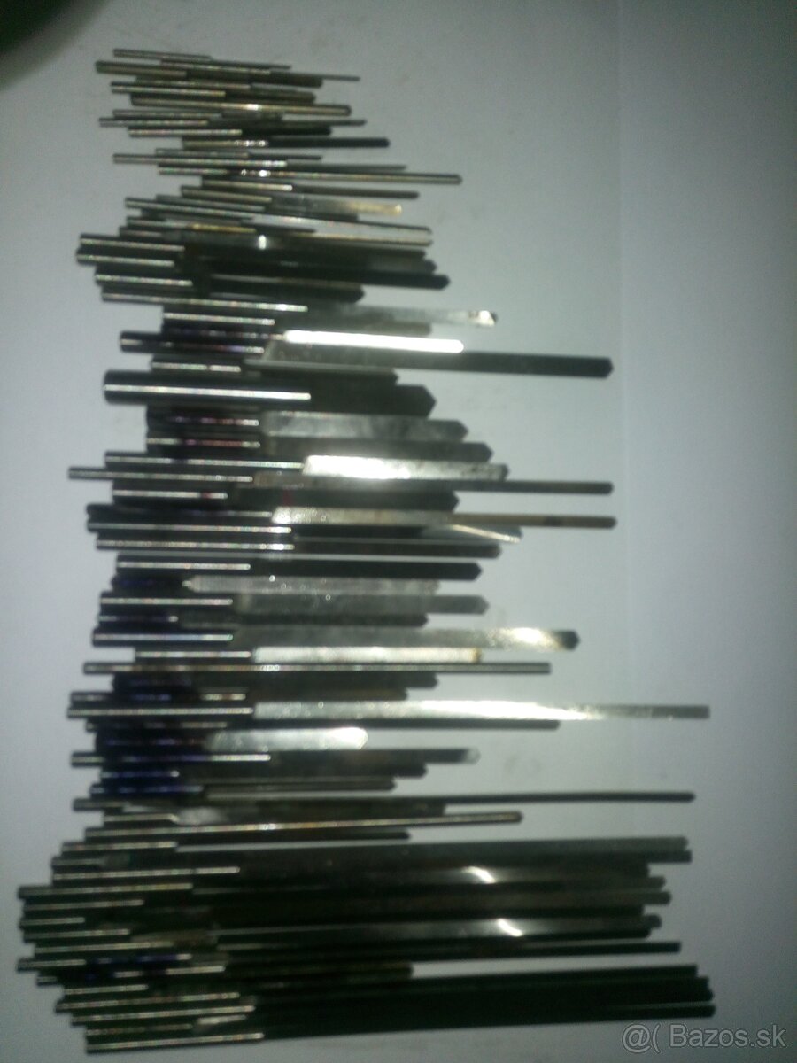 Od priemeru 1,5mm do 8mm, najkratší má 37mm najdlhší 150mm, priemer vrtákov na foto,70 ks,iba spolu,poprosím najskôr e-mail,stopky vrtákov su od fixky,nie sú spálené už ich nepotrebujem.