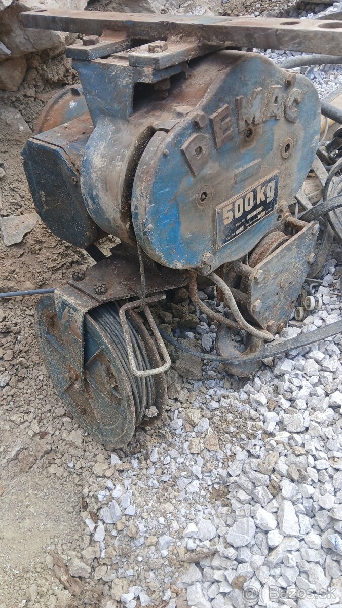 Predám žeriav demag - kladkostroj kočka hupcuk vo výbornom stave pôvodne bol ako žeriav v hale, dva stupňe rýchlosti zdvihu lano moze ist bud na dvojno alebo na 1x navíjací bubon pre lanko, ovládač všetko, používal som ho na kopanie studne pripojenie 380v