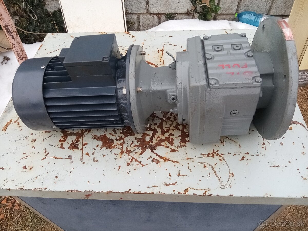 Predám plne funkčný elektromotor s prevodovkou 1,5kW , 1410ot. , výstupné otáčky cca 105ot./min. , hriadeľ 35mm.
