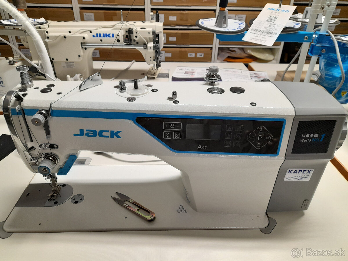 jednoihlový šijací stroj Jack A5E predĺžené rameno - [7.2. 2026]Predám nový poskladaný 1-ihlový šijací stroj so spodným (zúbkovým) podávaním a predĺženým ramenom 30cm typ JK-A5E. Motor v hlave 230V, LED osvetlenie, pozícia ihly, automatický odstrih, zapošitie, zdvih patky. Tri funkčné tlačidlá na hlave stroja pri ihlovej tyči, USB zásuvka.