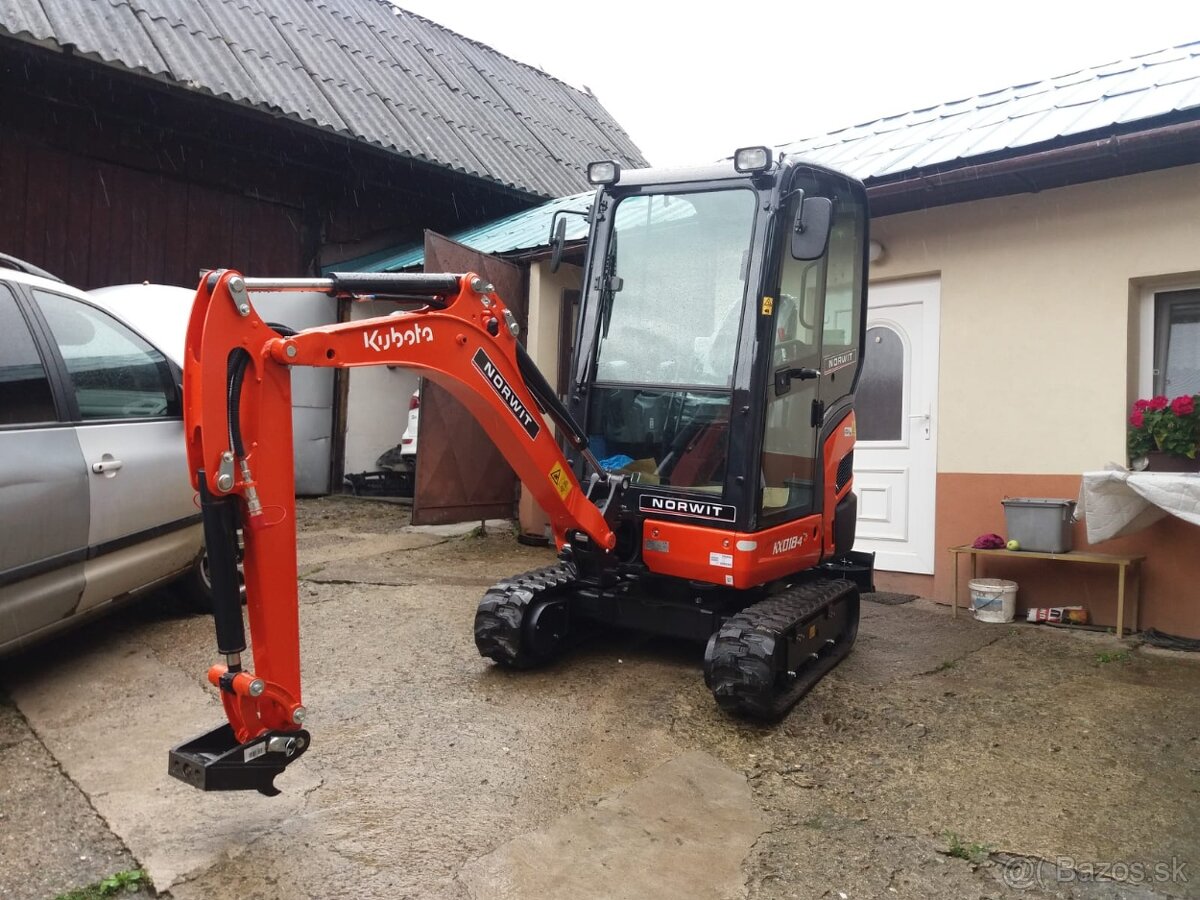 Predám minibáger Kubota kx 018-4 r.v.2018 má 3600mth s minimálnymi vôľami. Varechy 25,40 a 100svahovačka pevná, 3kľúče aj červený. Som prvý majiteľ, mám ho od nova, pravidelne servisovaný. Ročné pásy, v lete bol robený malý servis-oleje a filtre. Podobné ako JCB,Kobelco, Caterpillar,Yanmar, Takeuchi,Bobcat,Case,Hitachi,Komatsu,Sany,Sunward,Volvo.