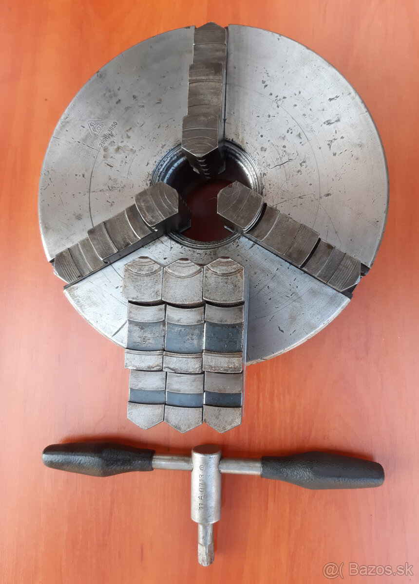 Predám skľučovadlo ø250 s dvomi sadami obojstranných čeľustí na sústruh. Iba volať.