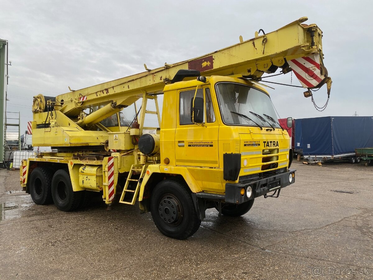 TATRA 815 P 14 AD 20T autožeriav 6x6 r.v. 1988, 11262 km, 15825 cm3, 208 kW, manuálna prevodovka, funkcia IVN, ťažné 40, 2 miesta na sedenie, váha- 23.440 kg, celková hmotnosť- 23.600 kg, nosnosť- 20.000 kg, stav pneumatík 80% vozidlo má zahraničný TP Batérie môžu opotrebované, je potrebné si priniesť vlastné alebo kúpiť nové.