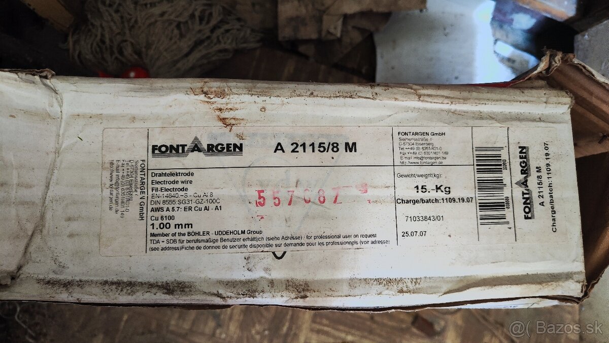 Predám nepoužitý zabalený drôt na zváranie CuAl8 hrúbky 1.00mm váha 15kg.